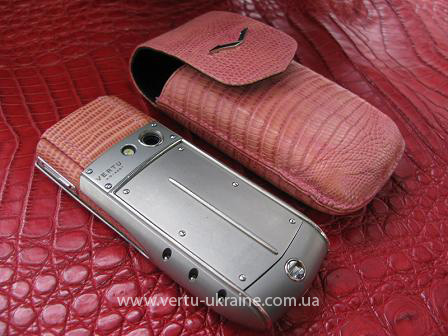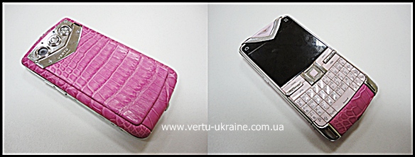 Замена кожи. Кожа розового крокодила телефон VERTU CONSTELLATION T