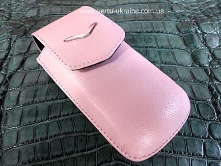 арт 13. Чехол Vertu Constellation. Овчинная кожа Pink. Серебряный логотип
