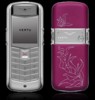 Модель ; Vertu Constellation Vivre Pink SE. Полированная нержавеющая сталь, рамка передней панели с гравировкой, белые бриллианты, розовая кожа с вышивкой